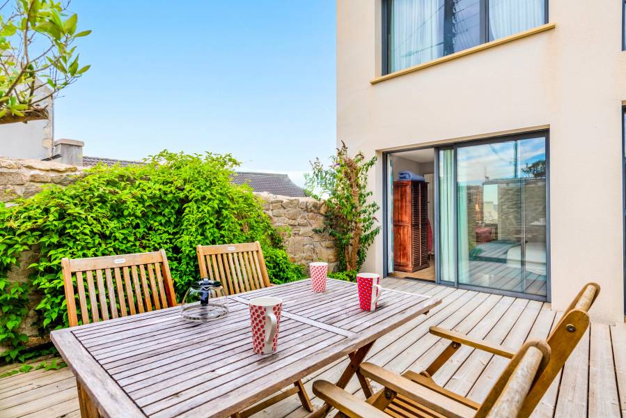 La VIGIE- Séjournez face au port!.Apartement cosy pour 2 personnes avec vue sur le port, terrasse en bois sans vis- à -vis et parking privé.Idéal pour un week-end ou des vacances en bord de mer,au calme et à proximité des sentiers côtiers et des commerces